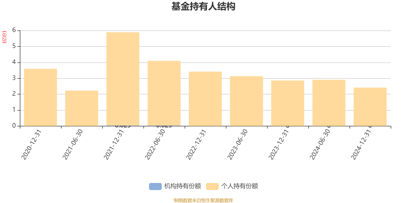 截至2024年12月31日,基金持有人共计2.79万户,合计持有2.41亿份。其中管理人员工持有29.43万份,占比0.12%,机构持有份额占比0.00%,个人投资者占比100.00%。