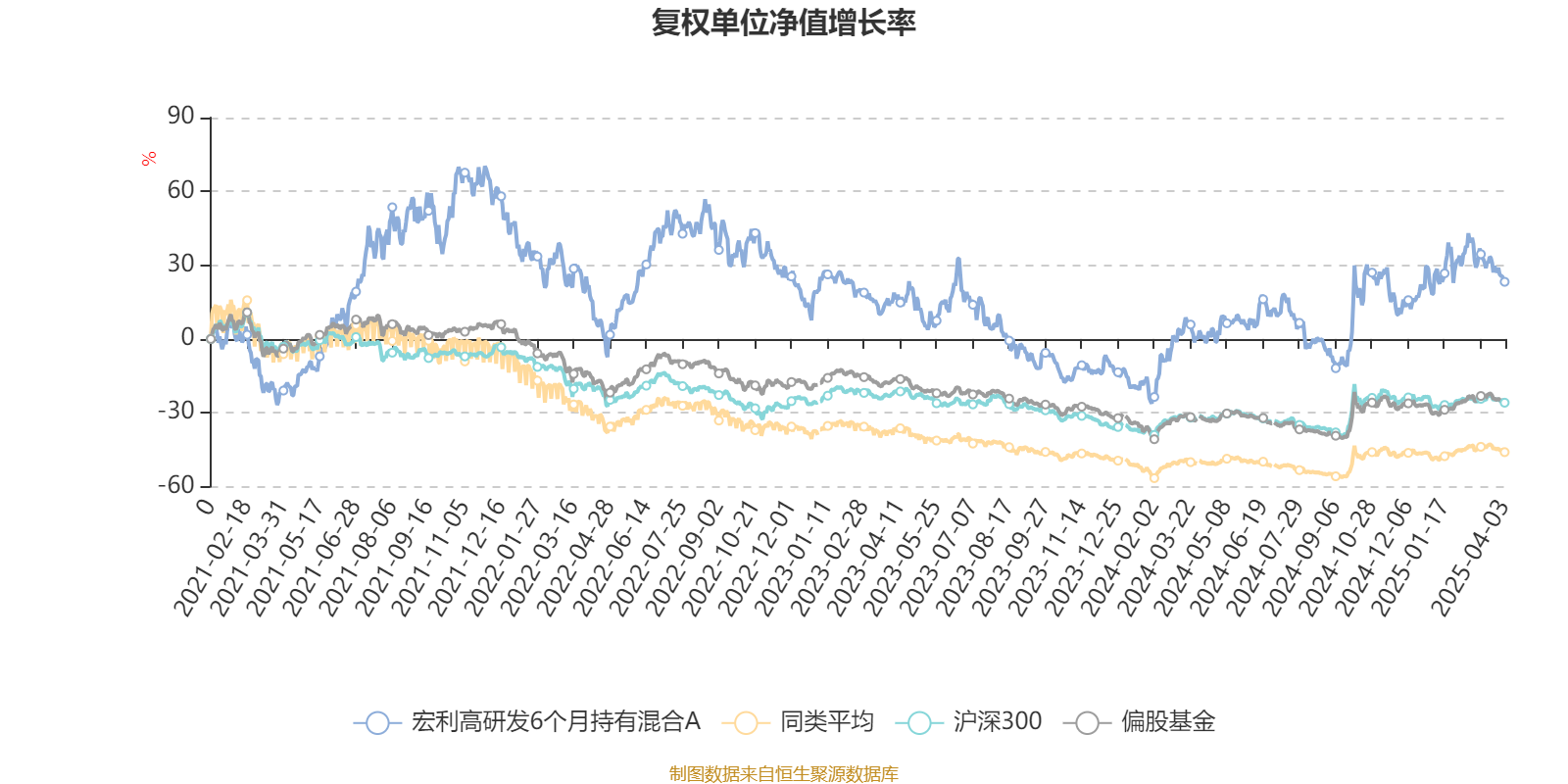 截至4月3日,宏利高研发6个月持有混合A近三个月复权单位净值增长率为4.29%,位于同类可比基金428/646;近半年复权单位净值增长率为7.50%,位于同类可比基金151/646;近一年复权单位净值增长率为23.12%,位于同类可比基金81/639;近三年复权单位净值增长率为1.24%,位于同类可比基金87/488。
